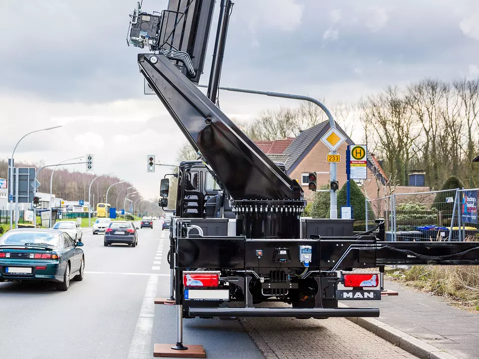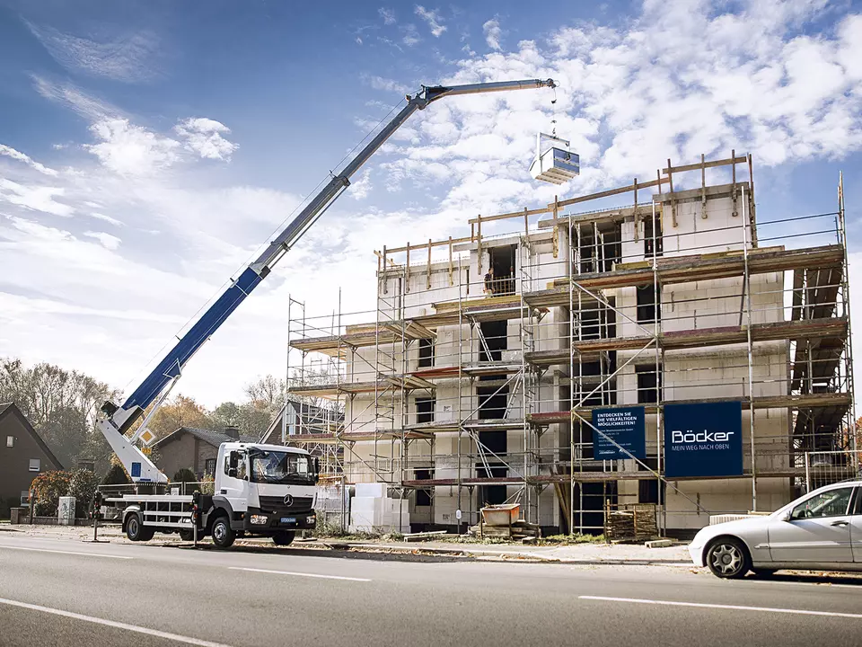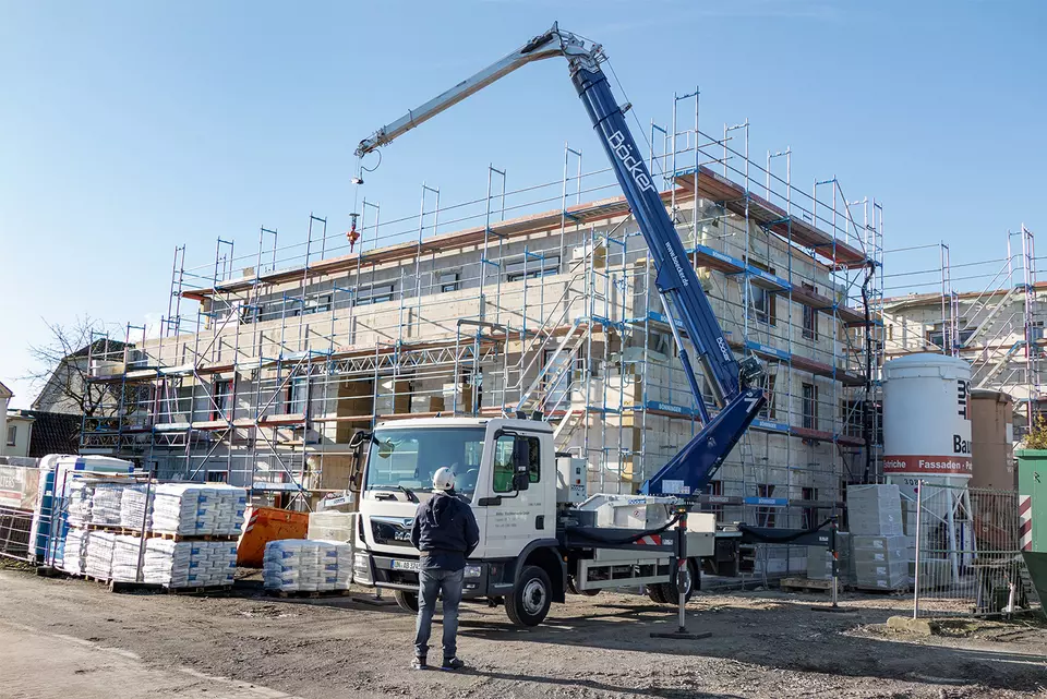 Sogar bei beengten Platzverhältnissen oder rückseitigen Gebäudebereichen ist der Einsatz durch kompakte Krane problemlos möglich.
